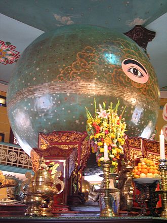 The Cao Dai Holy See in Tay Ninh is the spiritual headquarters of Caodaism, a syncretic religion founded in Vietnam in 1926. Caodaism blends elements of Buddhism, Christianity, Taoism, Islam, and Confucianism, and its vibrant temple is one of the most visually striking religious buildings in Southeast Asia. The Divine Eye, the religion's chief symbol, adorns the temple's facade. Noon prayer ceremonies with thousands of white-robed worshippers are a dramatic spectacle. Caodaism has between 2 and 5 million adherents, mostly in Vietnam.