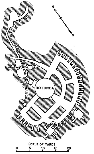 - •Contains 36 burial niches arranged in two concentric semicircular halls